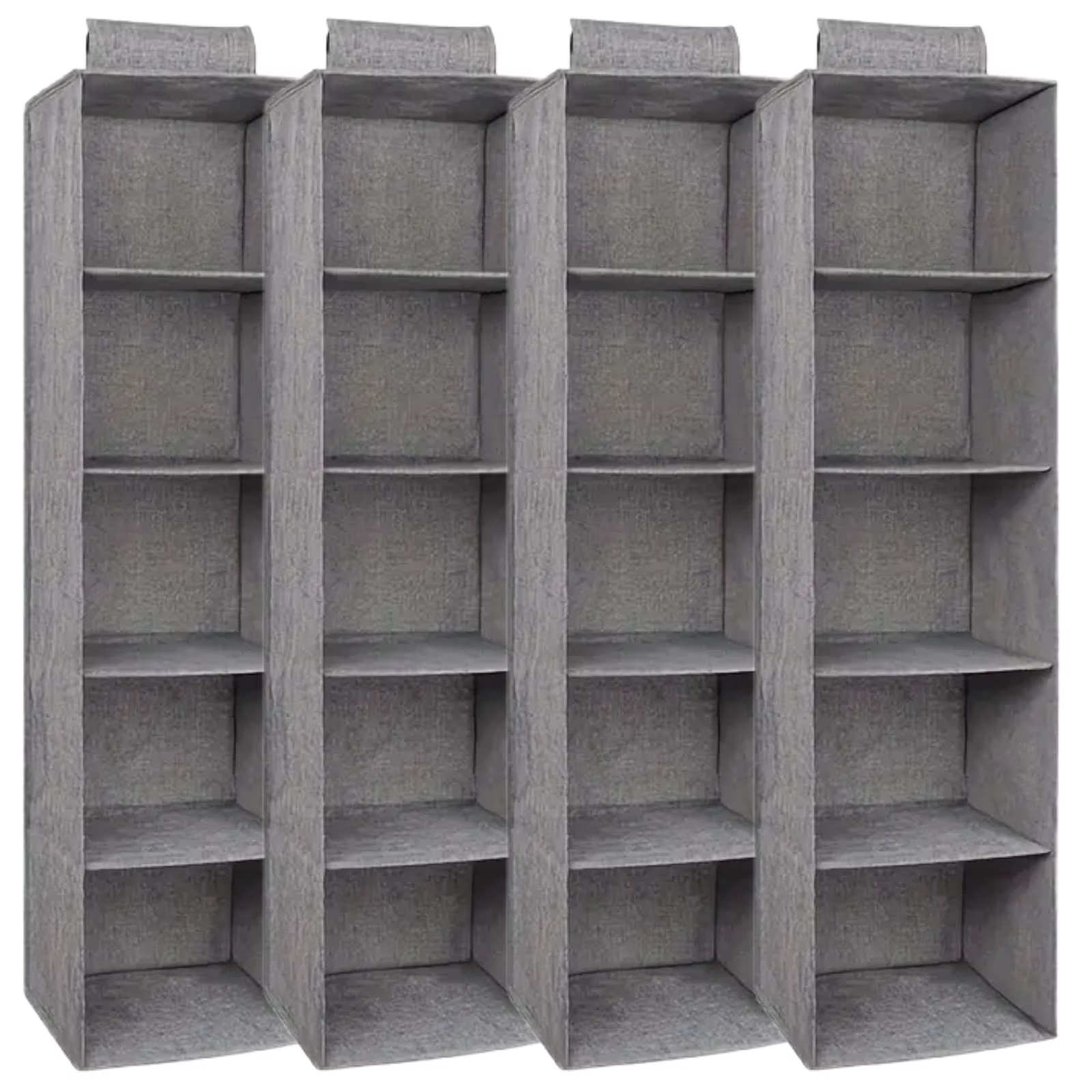 Hanging Closet Organizer, 4 Packs Closet Organizer and Storage, 5-Shelf Closet Hanging Storage Shelves, Closet Organization for Bedroom, Nursery, Diapers, Grey