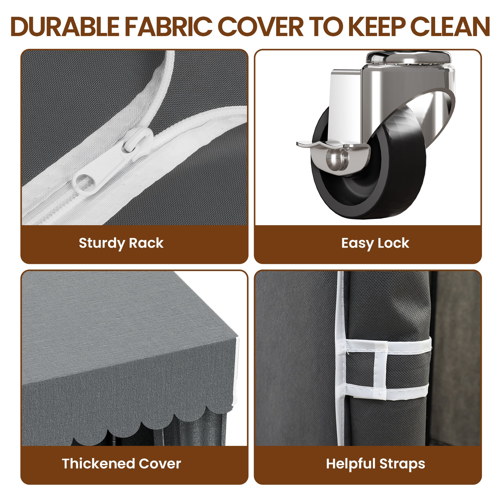 Heavy Duty Garment Rack with Gray Cover, Rolling Clothes Rack for Hanging Clothes, Freestanding Clothing Rack with 2-Tier Storage Shelf Wheels Hanging Rod Dust Cover, 35.4"x17"x72.4", Black