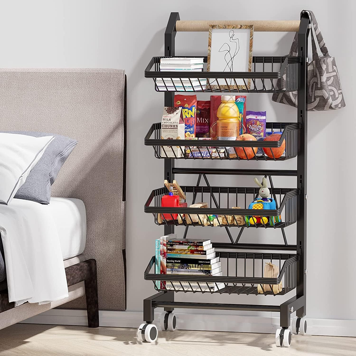 Each layer is a buckle structure and has 4 optional card holes, The spacing between each layer can be adjusted at will, It is more convenient to place items.Perfect for storage and display, enough for fruits, vegetables,kid's toy, food, snack, craft supplies, and so much more.