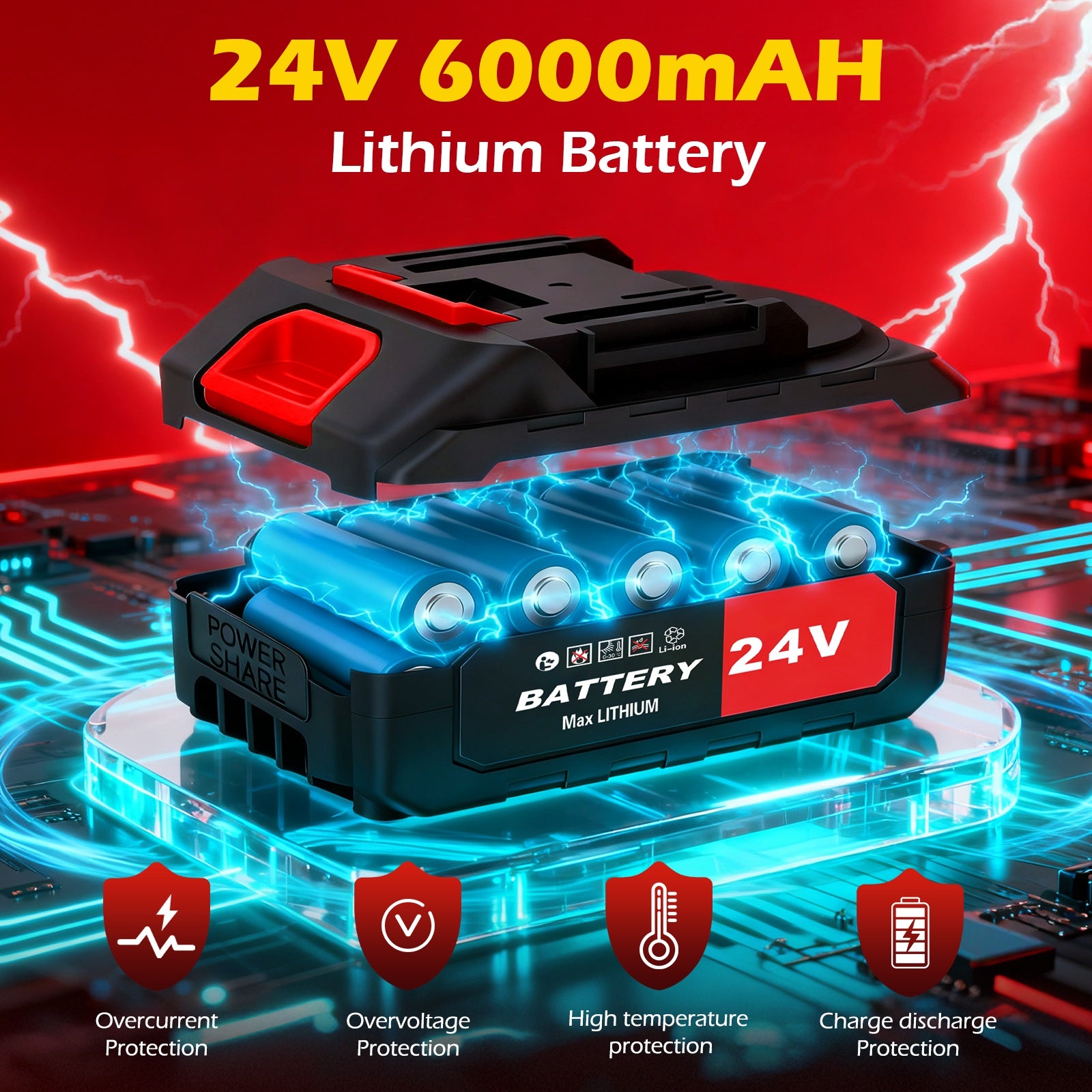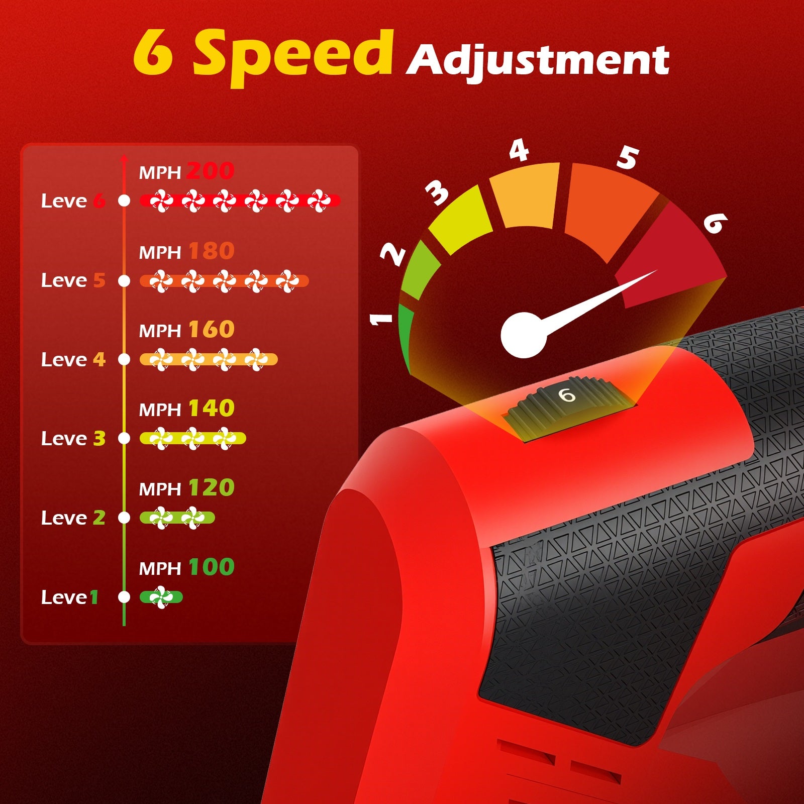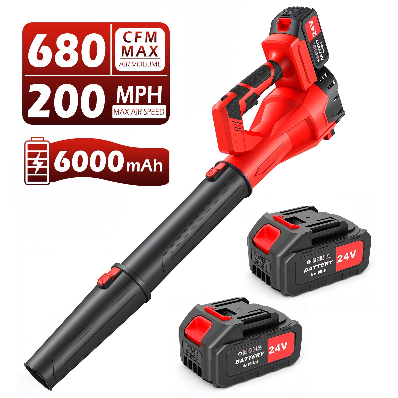 Powered by a 24V lithium-ion battery, this cordless leaf blower combines robust performance with user-friendly operation. Equipped with an efficient turbo system, it delivers hurricane-level wind speeds of up to 90 m/s and a peak power of 800W, quickly clearing leaves, dust, and even damp debris. Featuring two detachable extension tubes and six wind speed settings, it easily handles everything from ground-level cleaning to tabletops and tight corners. Weighing only 3.26 lbs with an ergonomic grip and detachable design, it supports one-handed use and easy storage. With 40 minutes of continuous runtime and 1-hour fast charging, say goodbye to battery anxiety and efficiently clean your yard, driveway, garage, and porch.