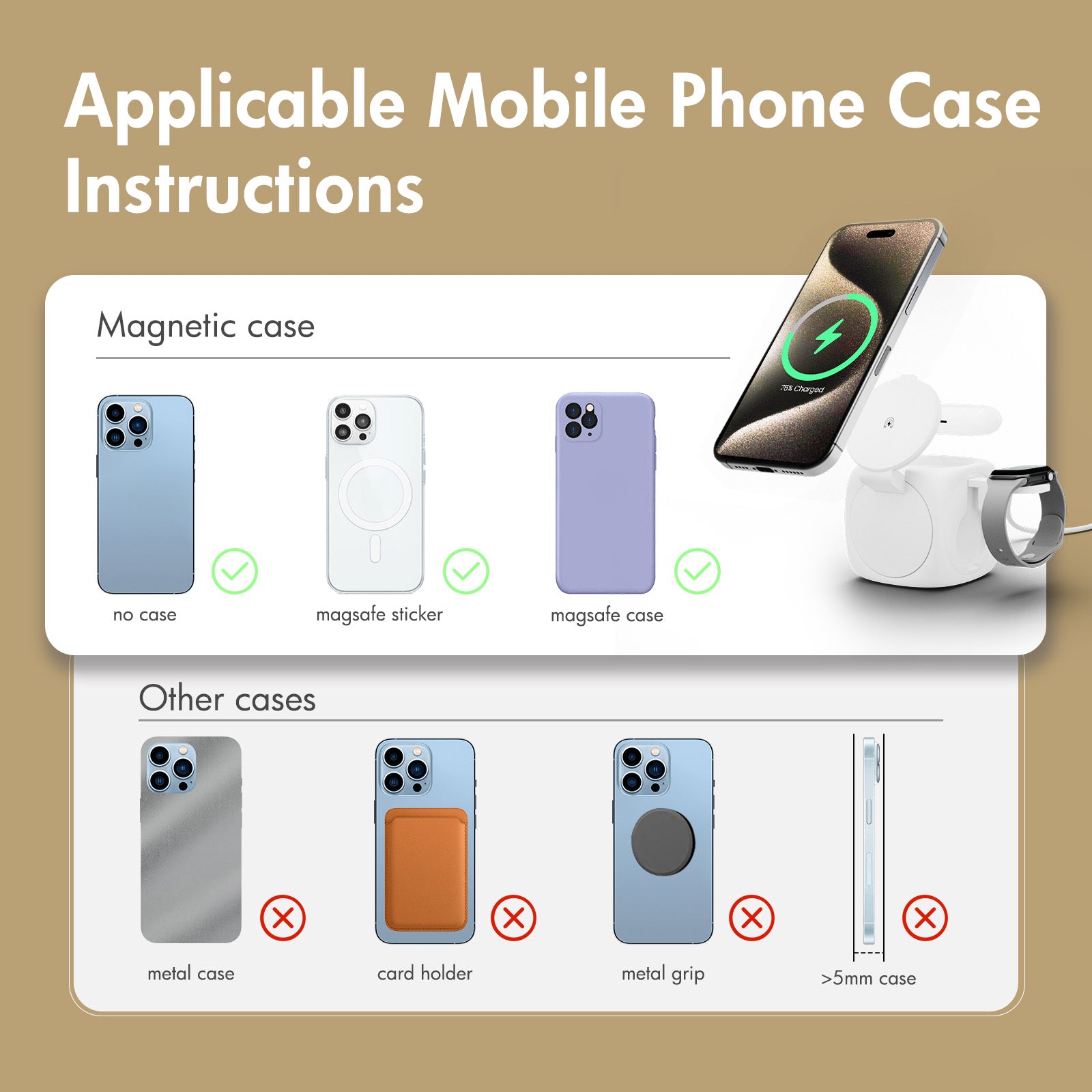 - Special Feature: phone watch airpods charging station, 3 in1 Magnetic Wireless Charger, Fast Charging, Charging Indicator, phone and watch charging station, iphone and watch charging station, wireless charger 3 in 1