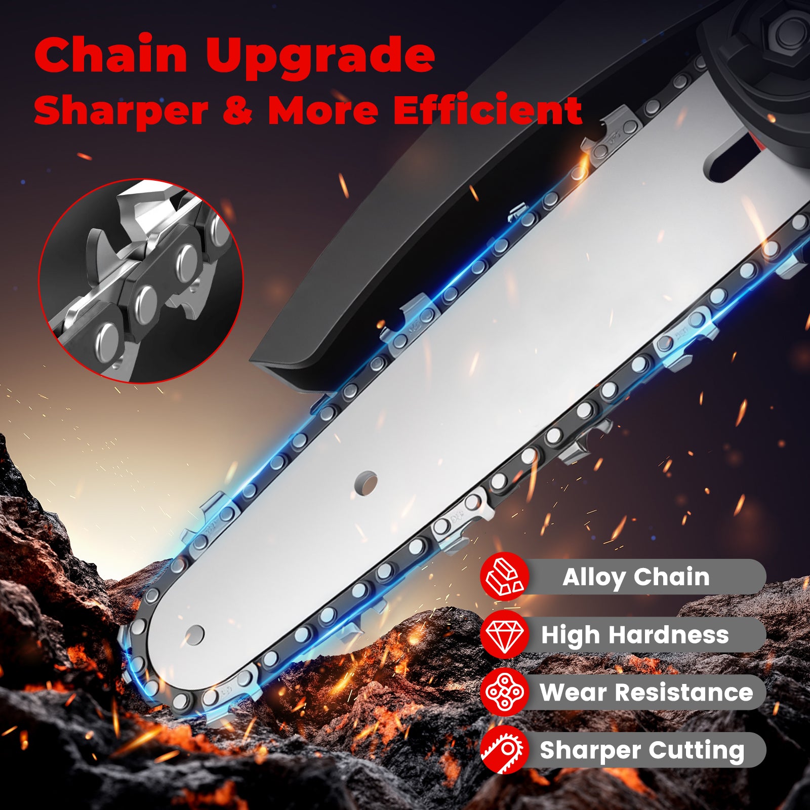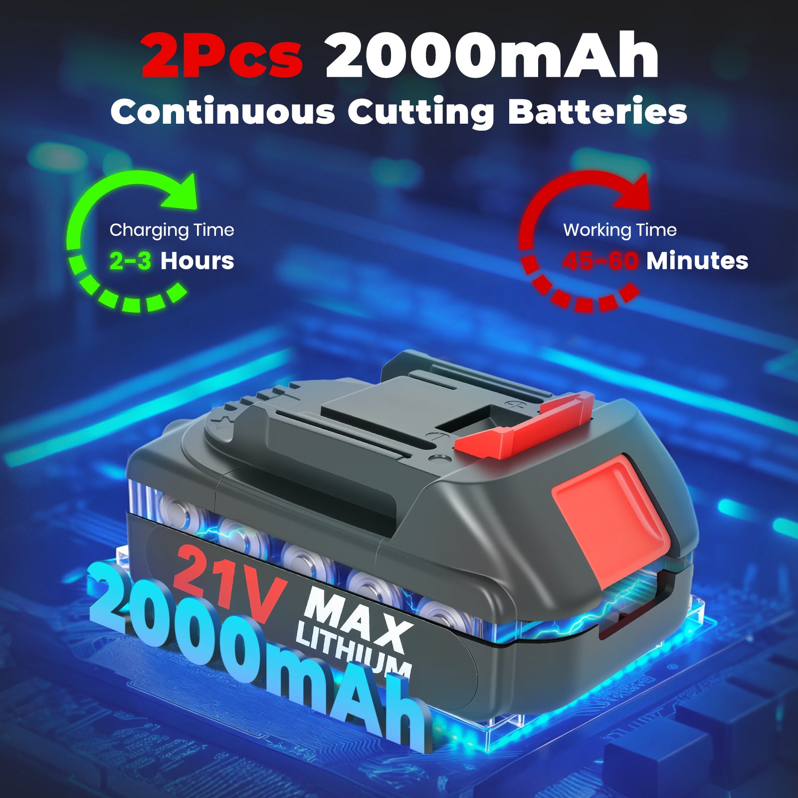 Discover the ultimate gardening companion! This compact cordless chainsaw combines two guide bars and three razor-sharp chains with an intelligent auto-lubrication system, delivering consistently smooth and precise cuts. Powered by two high-capacity batteries, it offers up to 60 minutes of continuous runtime and recharges in just 2-3 hours. Weighing only 2.6 lbs, its lightweight design minimizes fatigue, making it perfect for women and seniors. Enhanced with a safety lock, protective goggles, and gloves, it ensures complete peace of mind during operation.