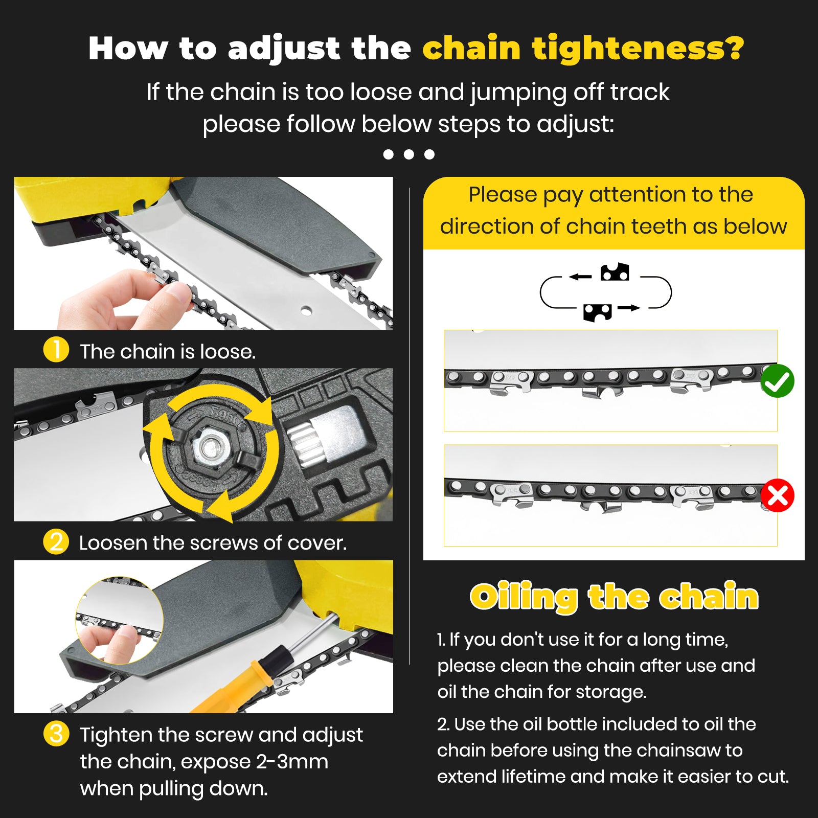 Discover the ultimate gardening companion! This compact cordless chainsaw combines two guide bars and three razor-sharp chains with an intelligent auto-lubrication system, delivering consistently smooth and precise cuts. Powered by two high-capacity batteries, it offers up to 60 minutes of continuous runtime and recharges in just 2-3 hours. Weighing only 2.6 lbs, its lightweight design minimizes fatigue, making it perfect for women and seniors. Enhanced with a safety lock, protective goggles, and gloves, it ensures complete peace of mind during operation.