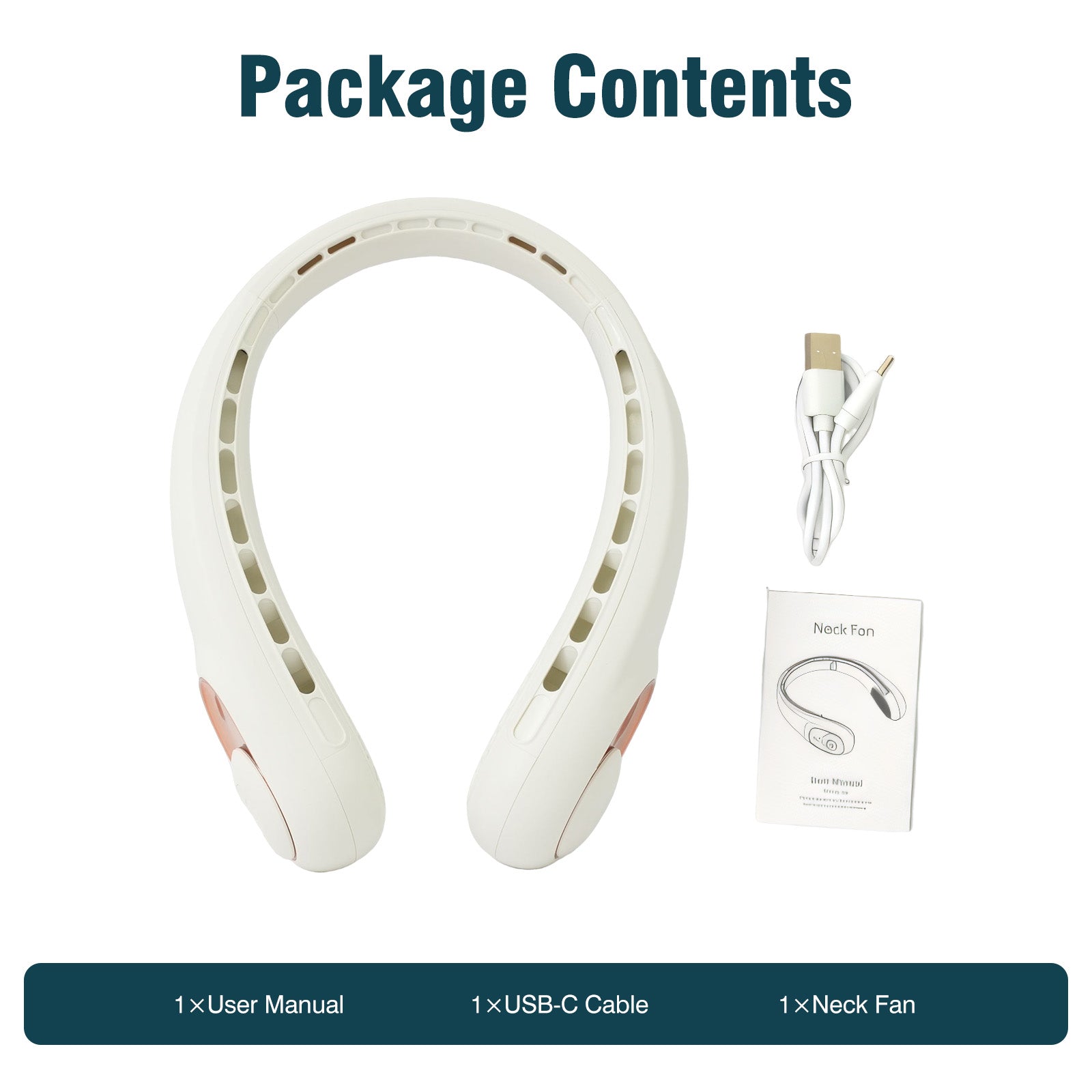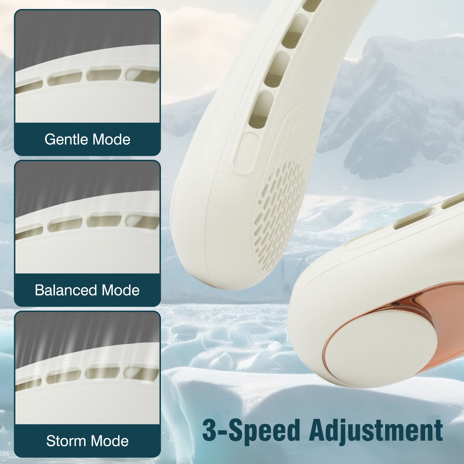 Neck Fan 4000mAh & USB-C Fast Charge portable Fan, Bladeless 360¡ã Cooling 3-Speed Adjustable Wind for Office Travel Sports, Hands-Free personal Fan for Men Women White