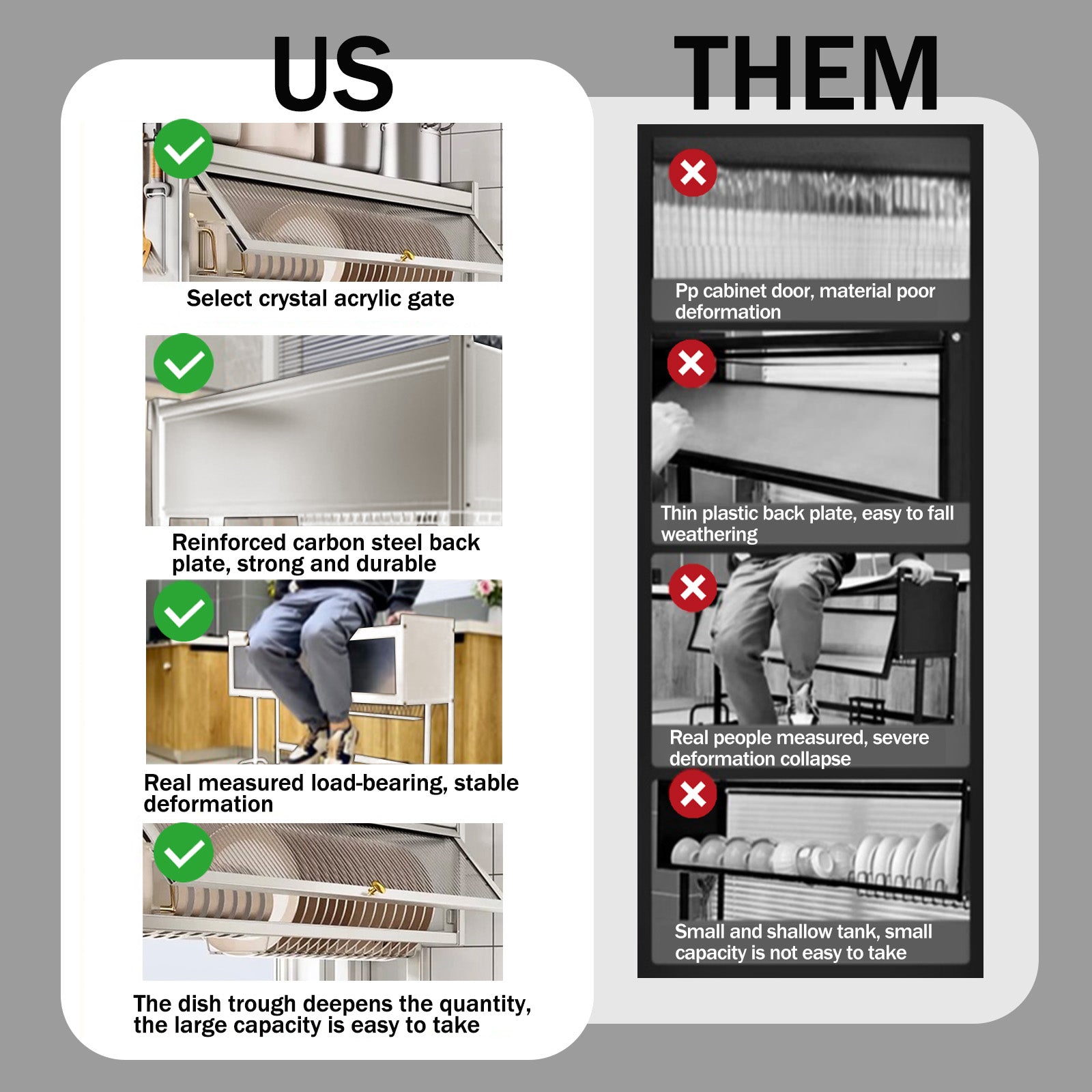 Say goodbye to the dust and clutter of traditional dish racks. This dust-proof design with a cover keeps your kitchen countertop tidy and clean. The magnetic door closure ensures a tight seal, preventing dust and moisture from entering, keeping your dishes protected. The ventilated drainage net quickly dries your dishes, preventing mold and ensuring hygiene, which prolongs the life of your tableware.