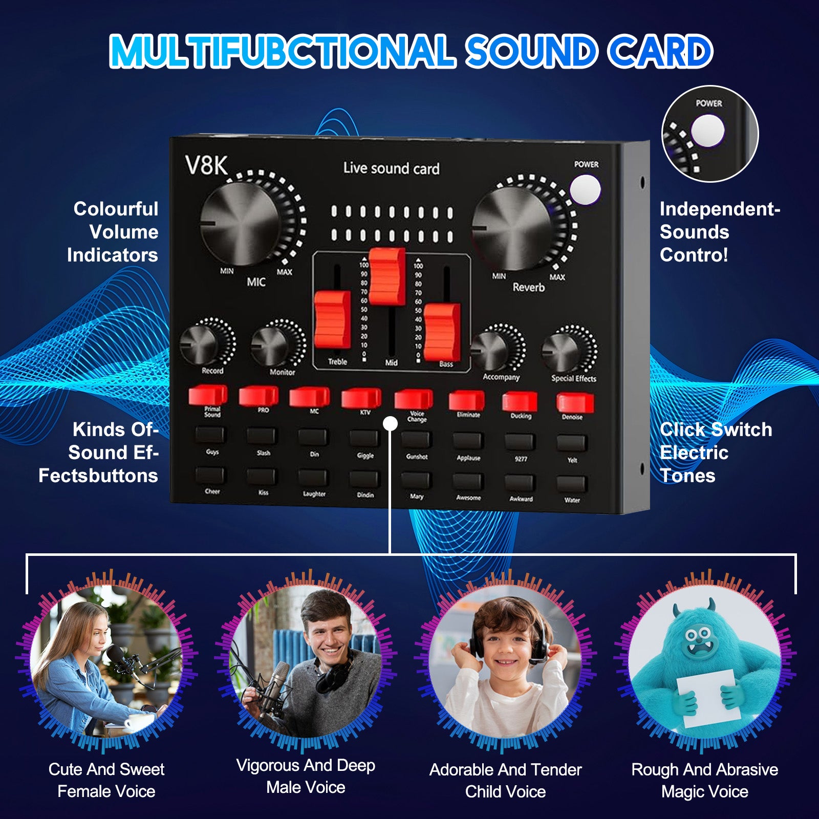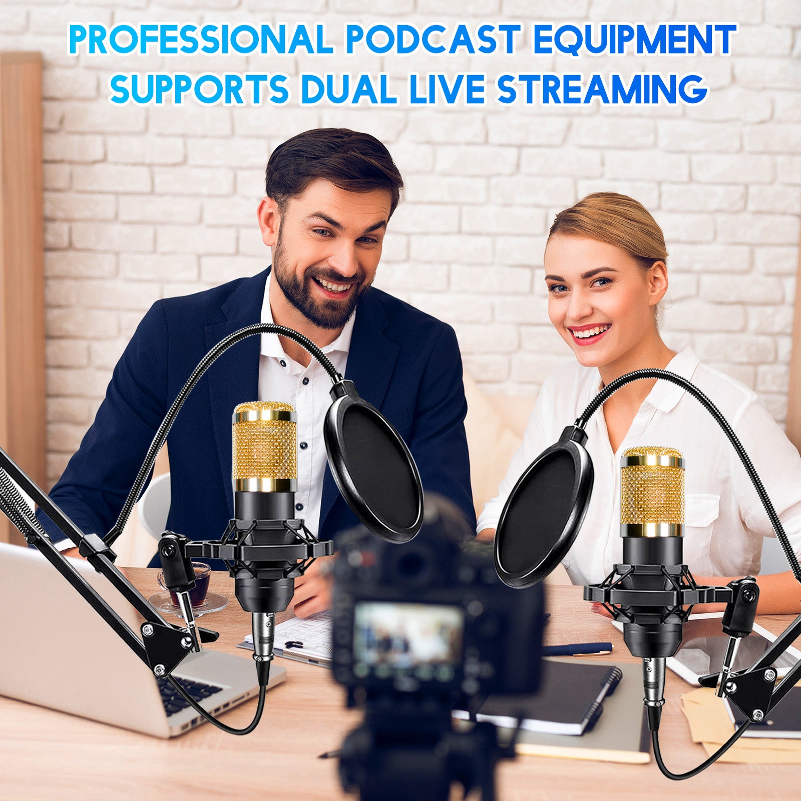 Podcast Equipment Bundle, 2 Audio Interface with BM800 Microphone, Perfect for Live Streaming, Singing