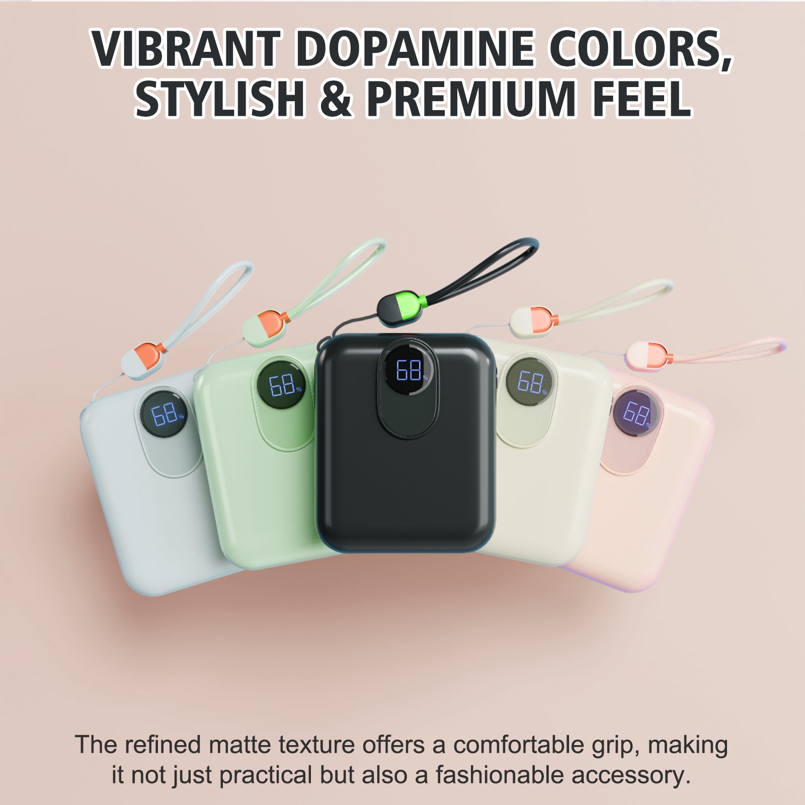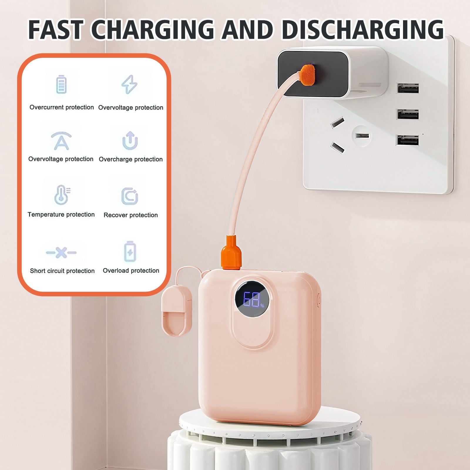 This magnetic power bank redefines portable charging.Featuring an innovative detachable built in cable design, it is ready to use anytime, eliminating the hassle of forgetting charging cables.