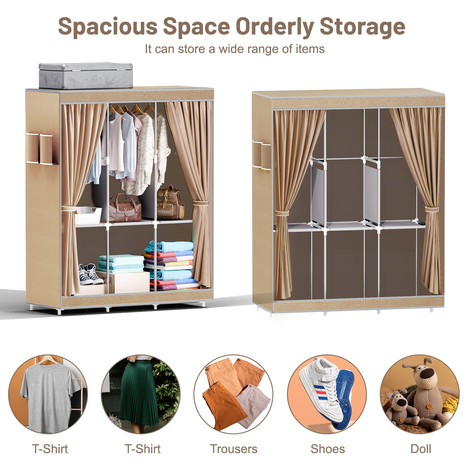 Portable Closet, Clothing Rack Shelf, Dustproof Non-Woven Fabric Closet with Cover, Beige