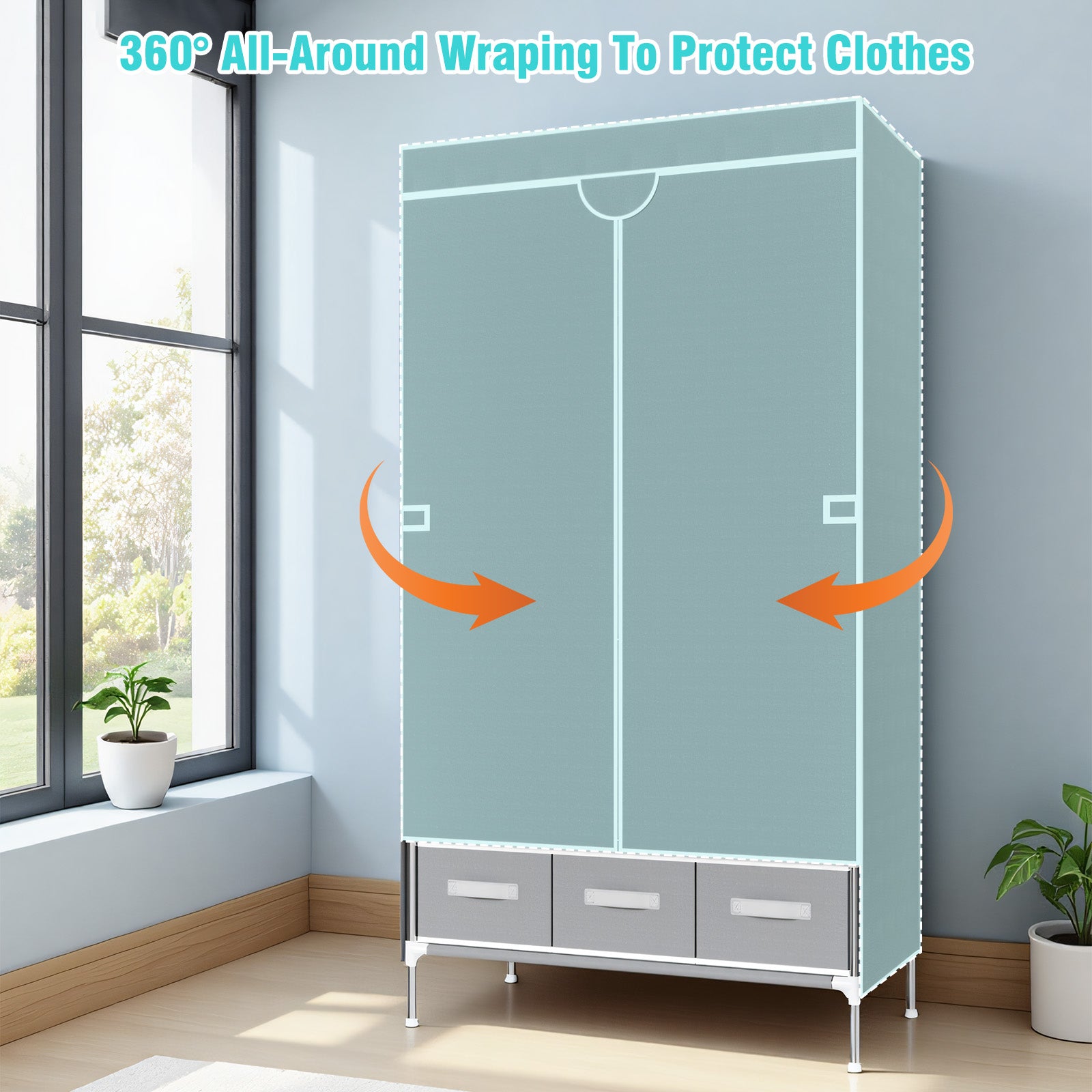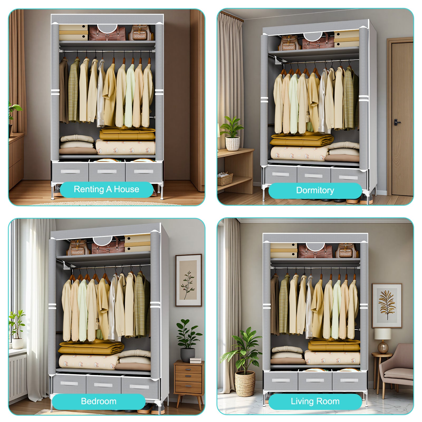 This non-woven fabric closet organizers and storage features a 19mm thickened steel tube frame, increasing load-bearing capacity by 50%. Made of high-density Oxford fabric, the exterior is durable, wear-resistant, dustproof, and light-blocking, with a minimalist look that blends seamlessly into any home decor.