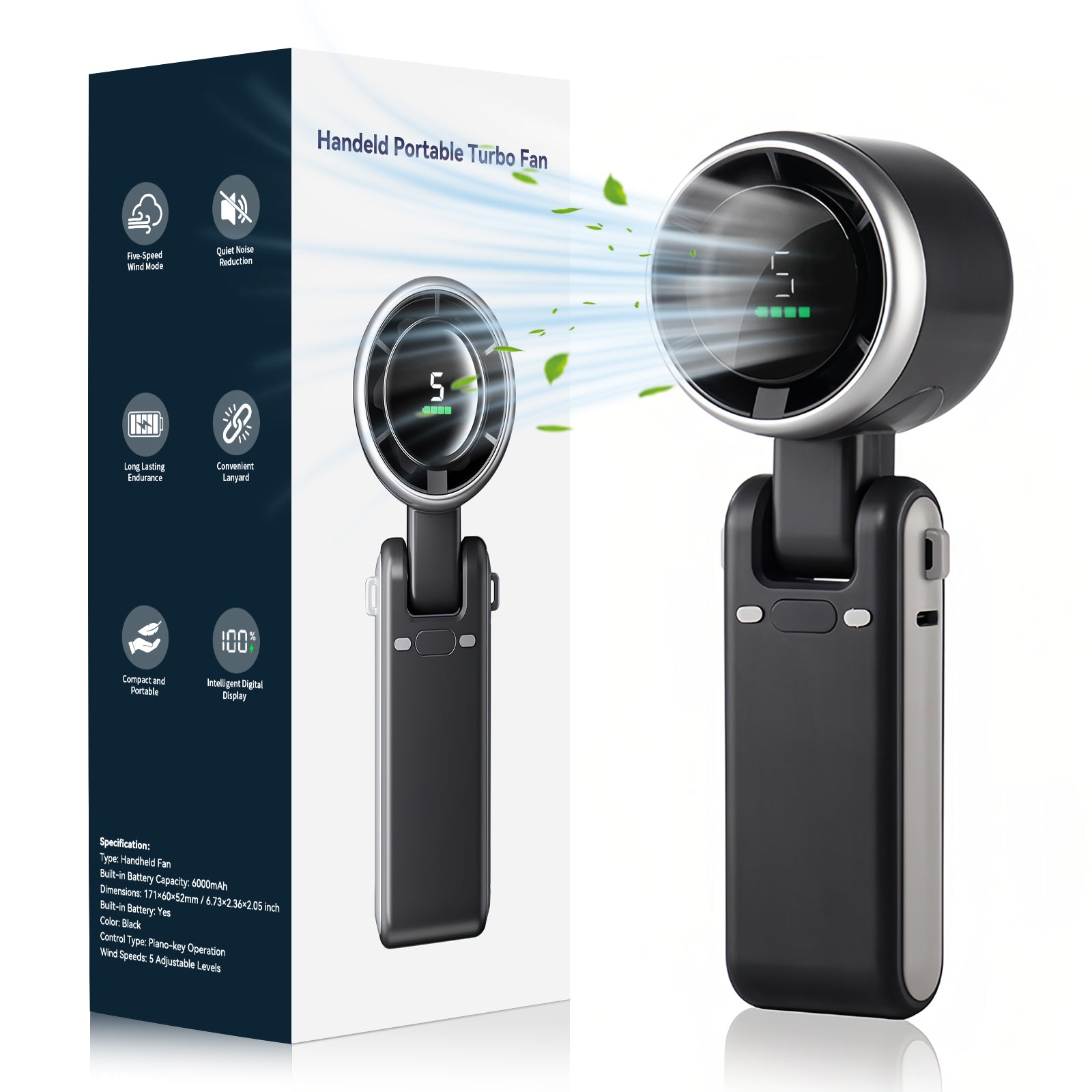 Portable Handheld Fan, 3-in-1 13,500 RPM High-Speed Turbo Mini Fan, USB Fast Charging Desk Fan, 180¡ãFoldable & Lightweight Personal Fan for Women Men Indoor Outdoor Travel(Black)