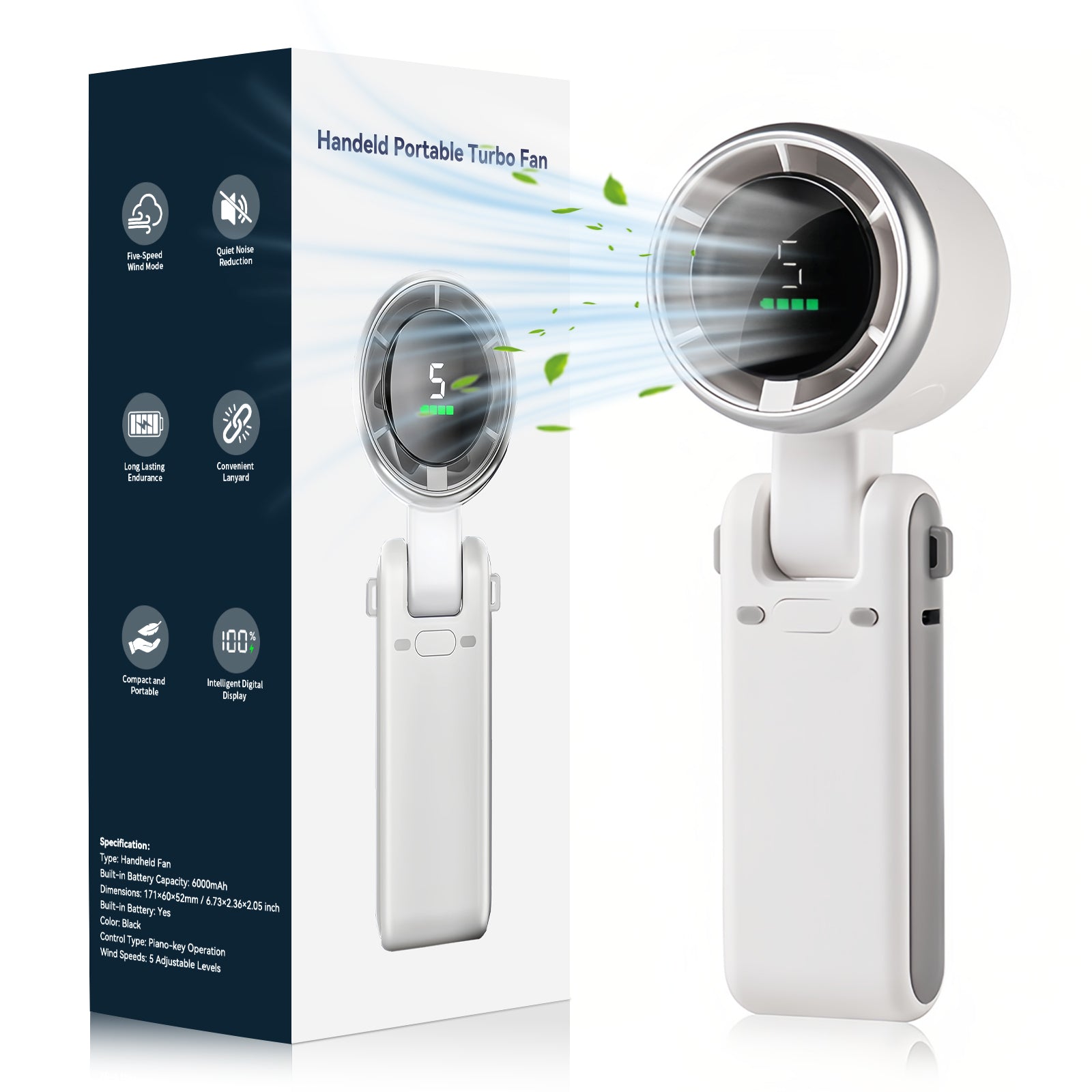 Portable Handheld Fan, 5-Speed 13,500 RPM 6000mAh Battery Desk Fan,180¡ã Foldable Ultra-Quiet Personal Fan,USB-C Rechargeable Mini Desk Fan Perfect for Travel Office Summer Gift (White)