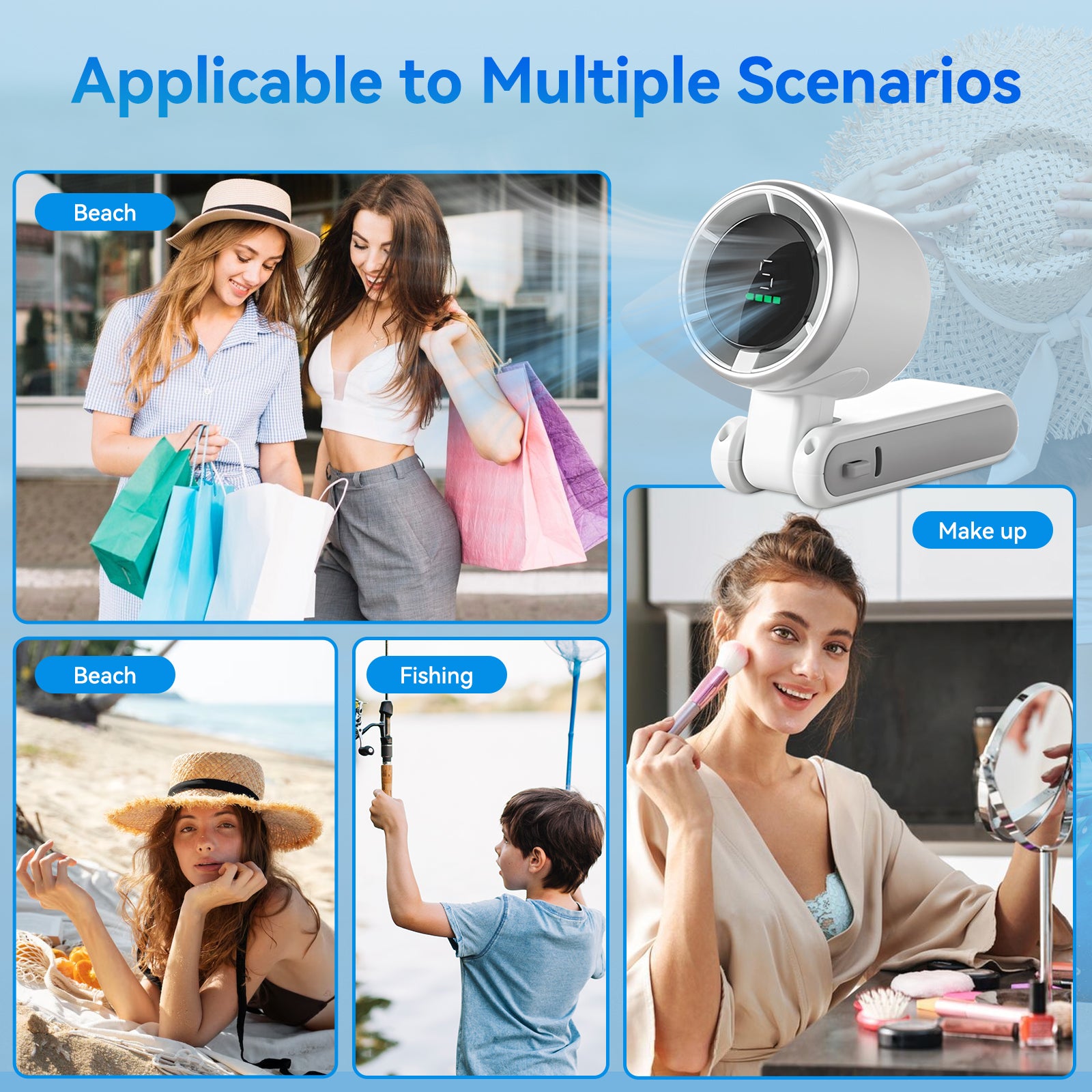 Customize your comfort with 5 adjustable wind speeds-from gentle breezes to powerful gusts-the personal fan is perfect for naps, commutes, or outdoor adventures,while the12-hour runtime(speed3)ensures uninterrupted relief for hiking, shopping, or office use.