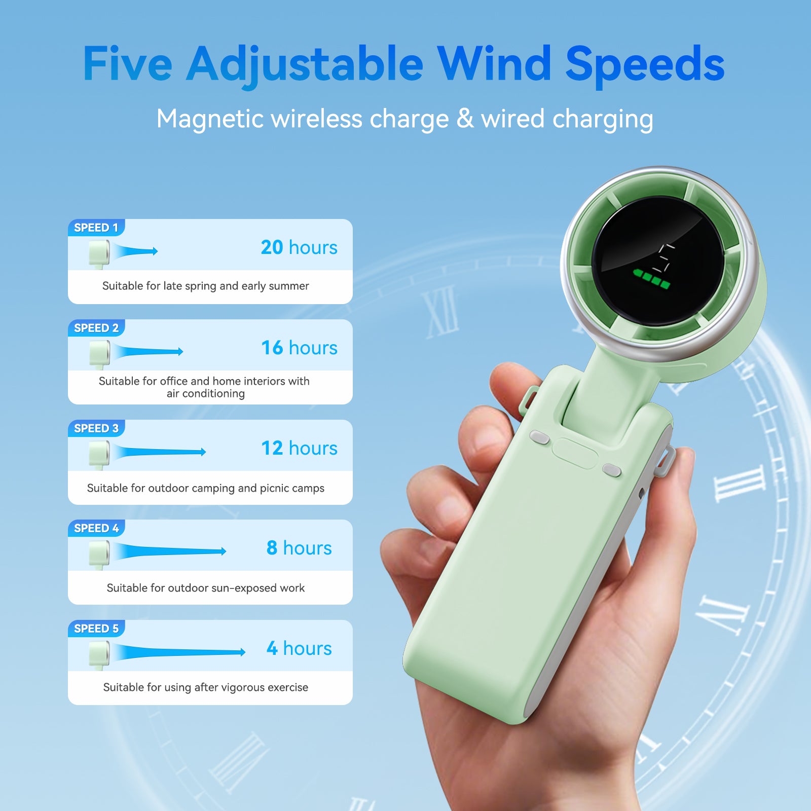 Portable Handheld Fan,Battery Personal Fan Portable Rechargeable,12 Hours Pocket Fan,3 IN 1 Hand Held Fan, Portable Fan for Travel/Outdoor/Indoor(Green)
