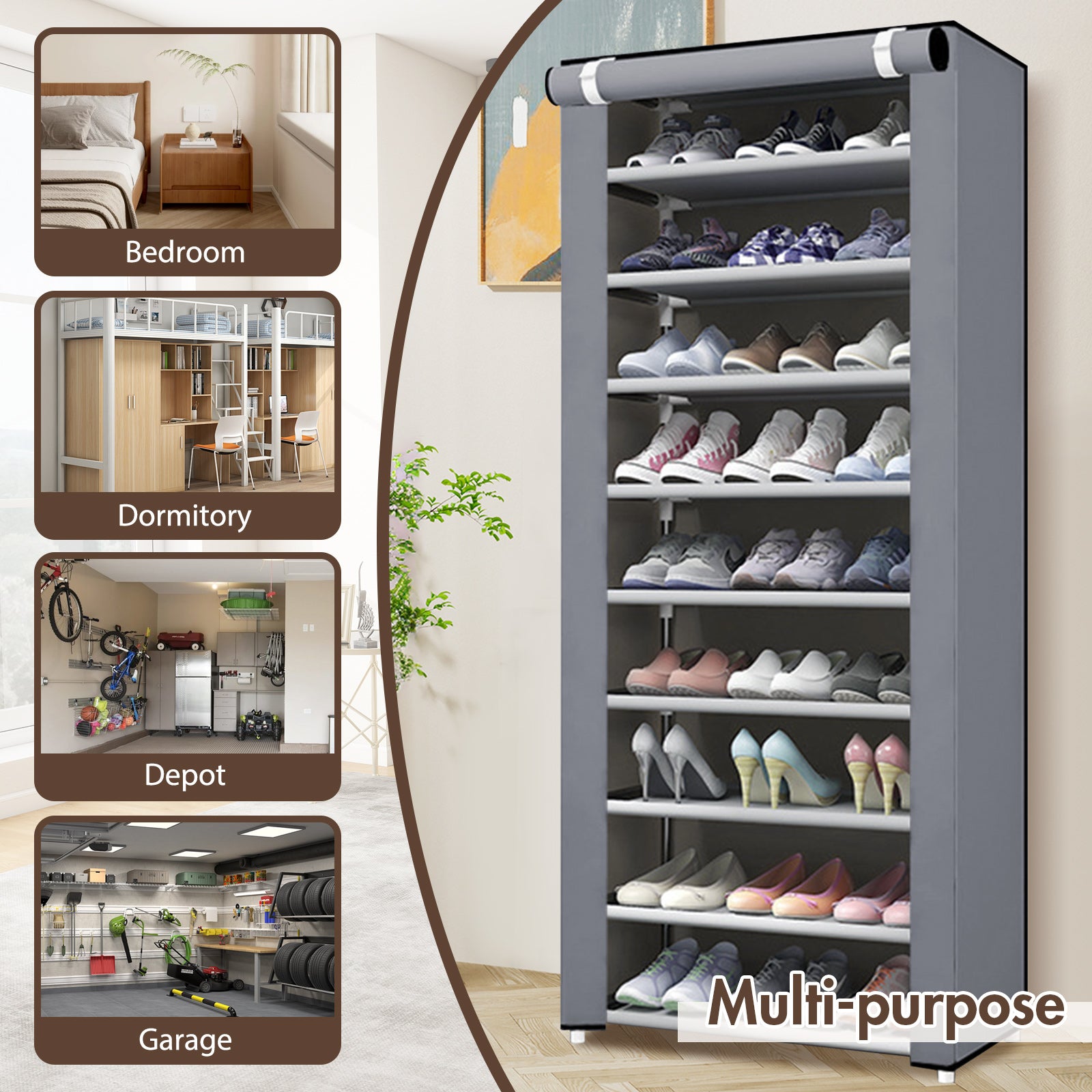 What's more, this shoe rack can also be used for multiple purposes, whether it's a storage closet in the bedroom or a storage shelf in the garage, it will be perfect for the job and make your space more tidy and organized.