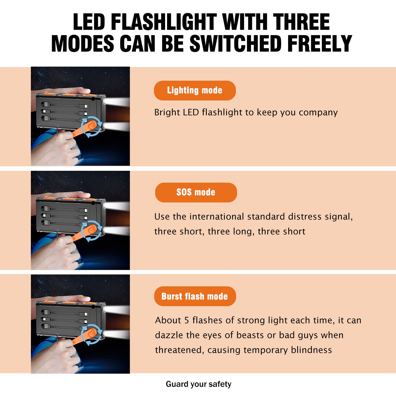 This versatile power bank combines solar charging, hand-crank, and built-in fast charging modes, allowing it to charge automatically in sunlight or with a hand crank in emergencies