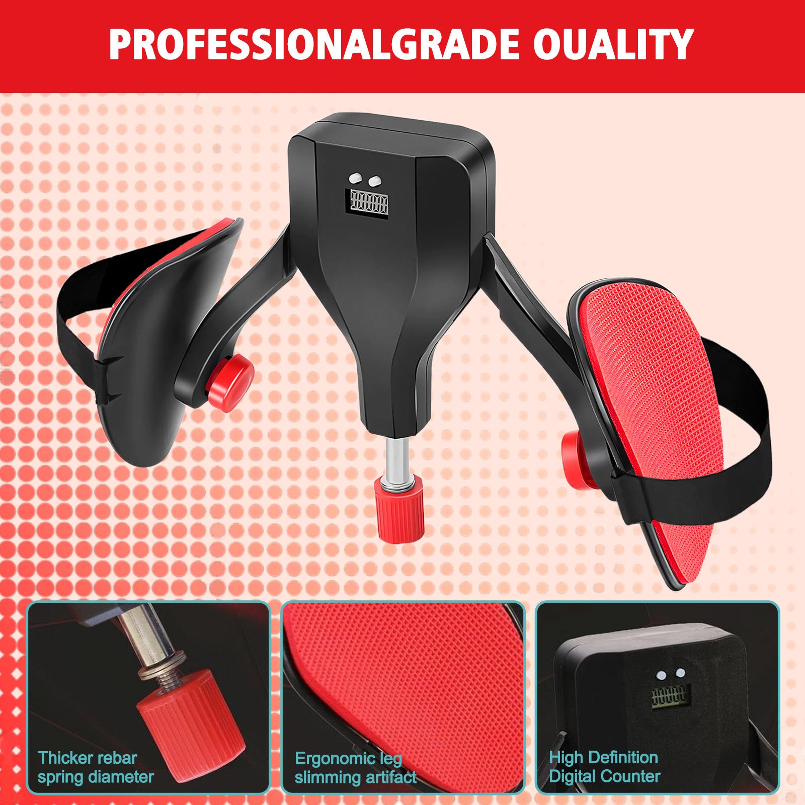 This thigh exerciser delivers stable and even resistance for safe, smooth workouts, eliminating sudden slippage and ensuring long-lasting durability. The eco-friendly EVA ergonomic leg pads are soft, thick, and designed to perfectly contour your legs, reducing pressure and discomfort compared to traditional toners. The built-in smart counter accurately tracks reps and workout duration, helping you plan your fitness routine scientifically. Non-slip leg straps securely hold the device in place with stretchable, breathable fabric for proper form. It also doubles as a pelvic floor exerciser for both men and women, and includes a resistance band for warm-ups and stretching.