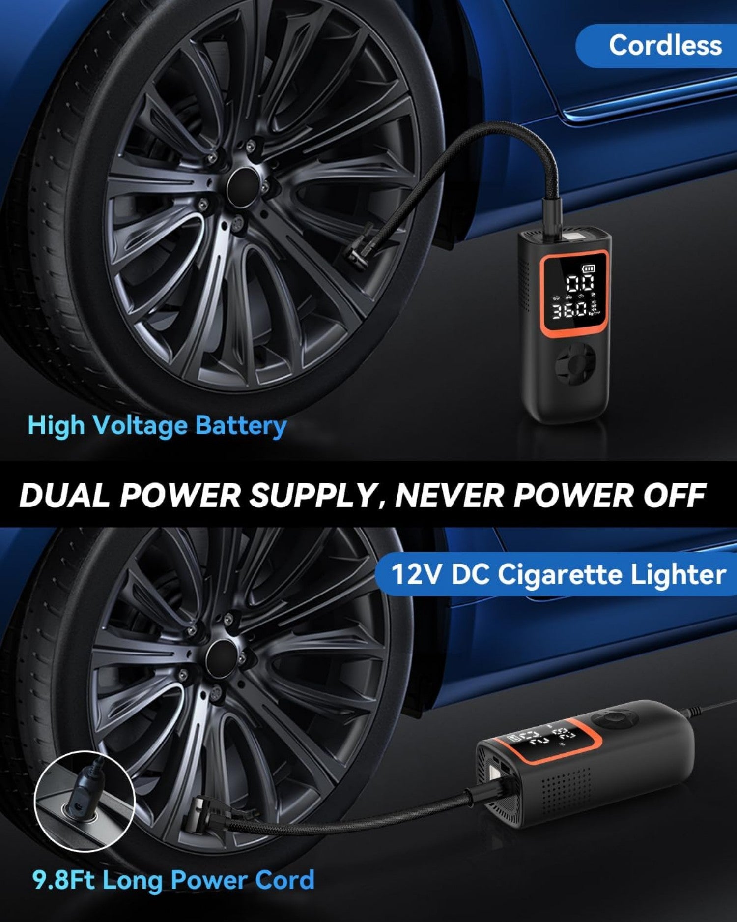 Tire Inflator Portable Air Compressor, 150PSI Portable Air Pump, Accurate Pressure LCD Display