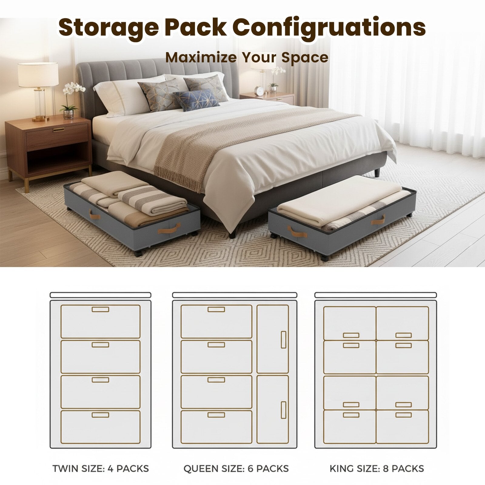 Under Bed Storage with Wheels 2-Pack, 65L XXL Under the Bed Storage Containers Large, 12" Tall Adjustable Storage for Underbed with Lids, Rolling for Shoes, Clothes, Blankets (Gray)