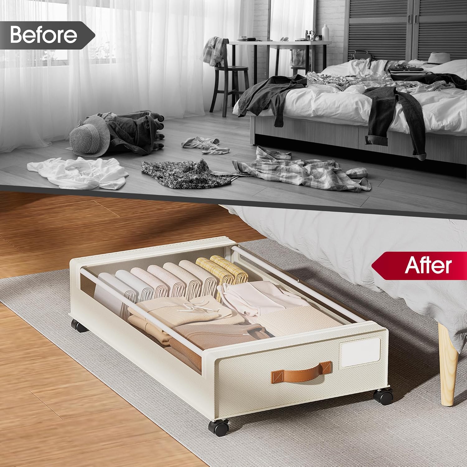 This underbed storage box is designed to maximize unused space beneath your bed like magic.it fits most beds perfectly, making the most of every inch of space. The transparent window allows you to quickly see what is inside for easy access. The smooth zipper keeps dust out, ensuring your items stay fresh.