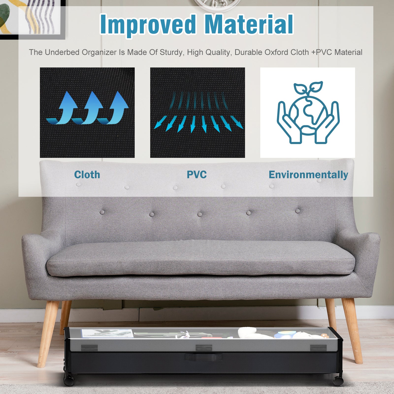 This under-bed storage box is designed to maximize unused space beneath your bed like magic. With a height of only 7.2 inches, it fits most beds perfectly, making the most of every inch of space.