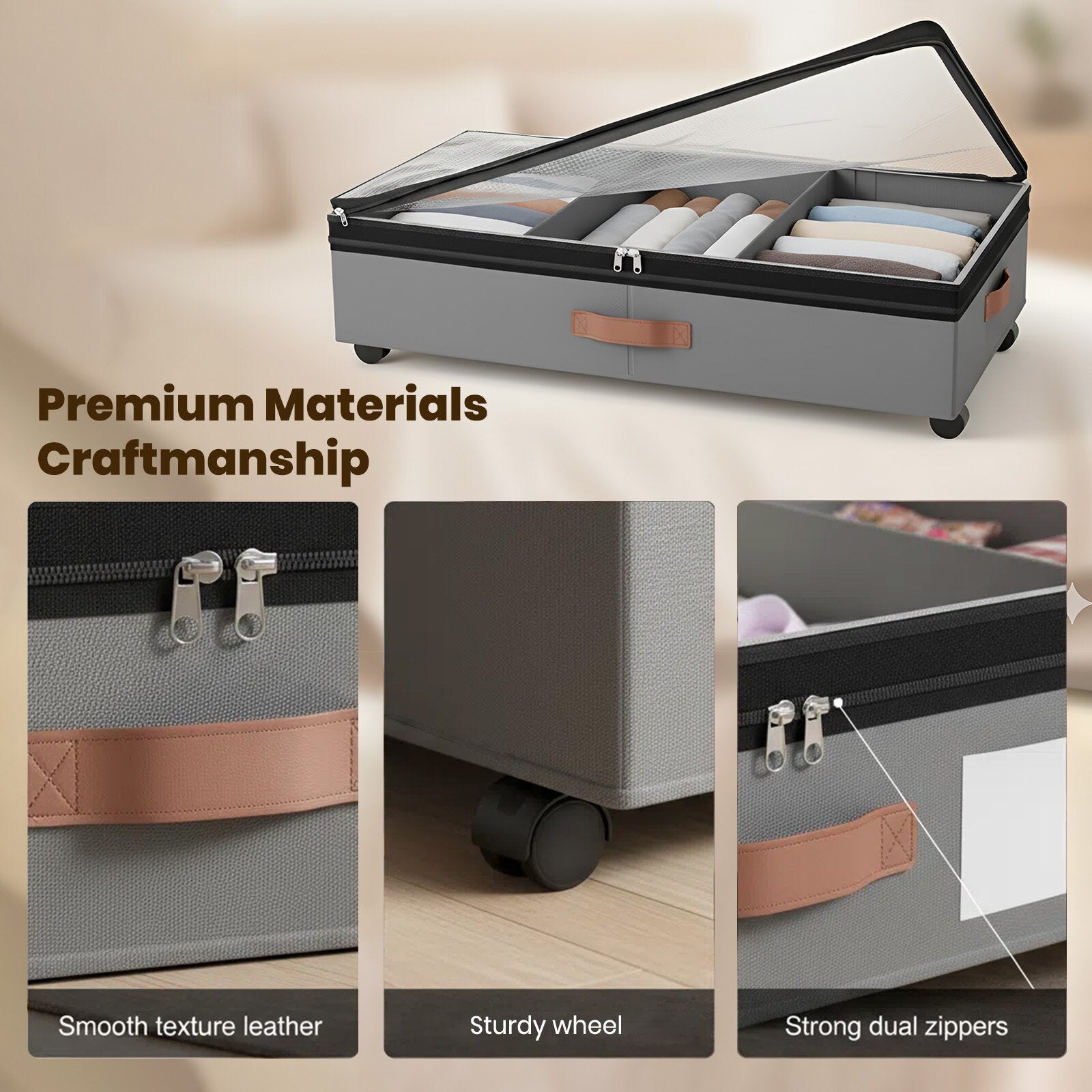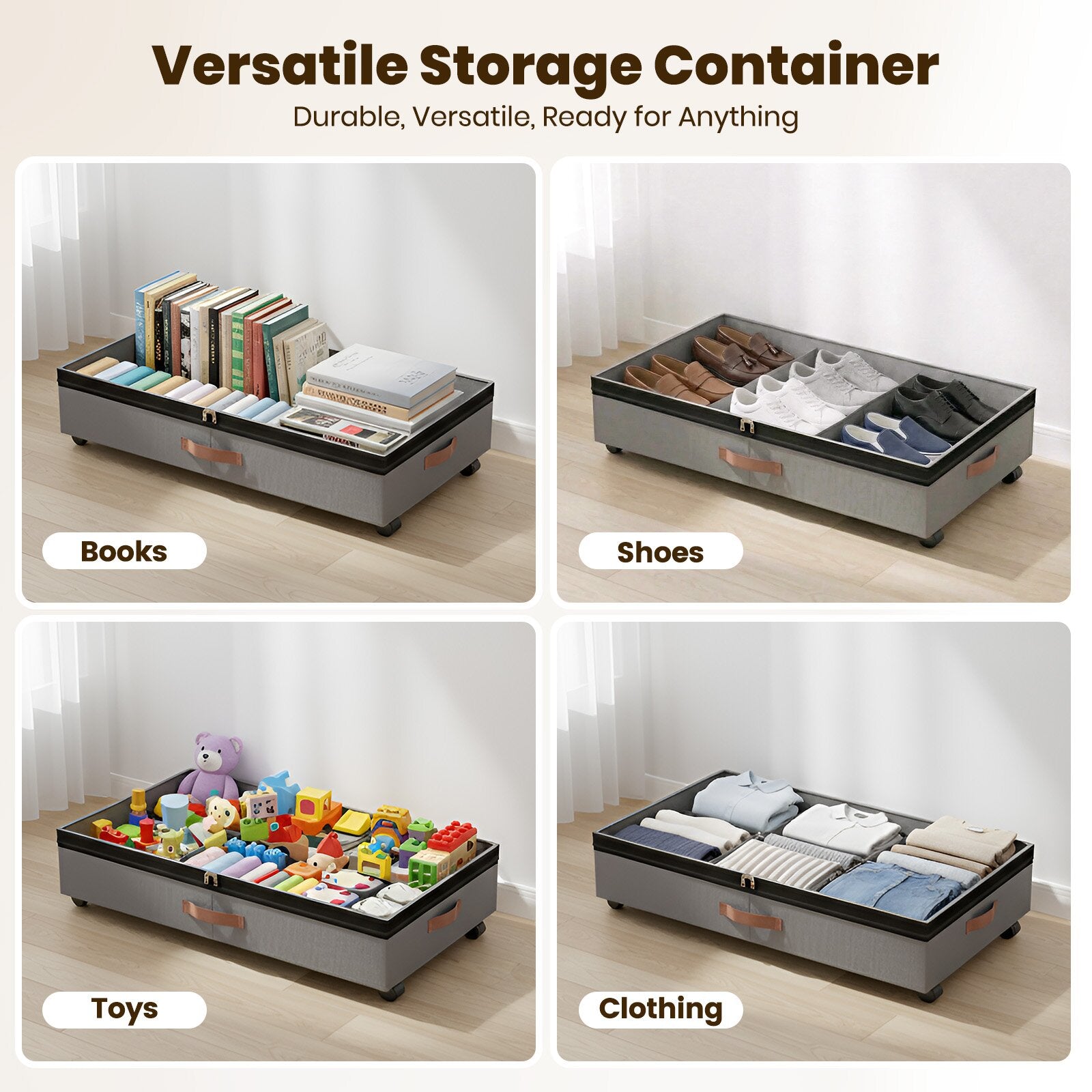 Maximize your underbed space with this smart storage solution! Designed for efficiency and convenience, this underbed storage box offers a generous 65L capacity, perfect for organizing seasonal clothing, heavy bedding, shoes, and daily essentials. Its adjustable height feature (7.8-10inches) ensures a perfect fit under most bed types.