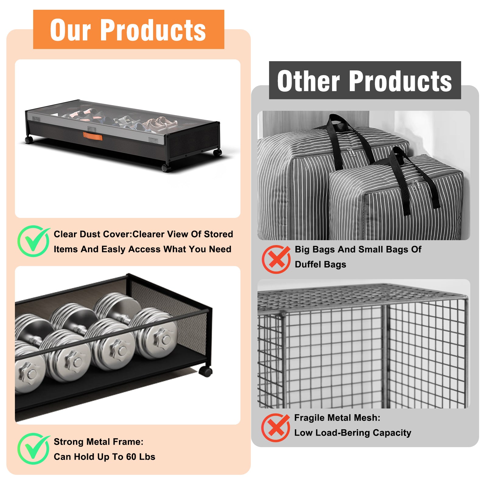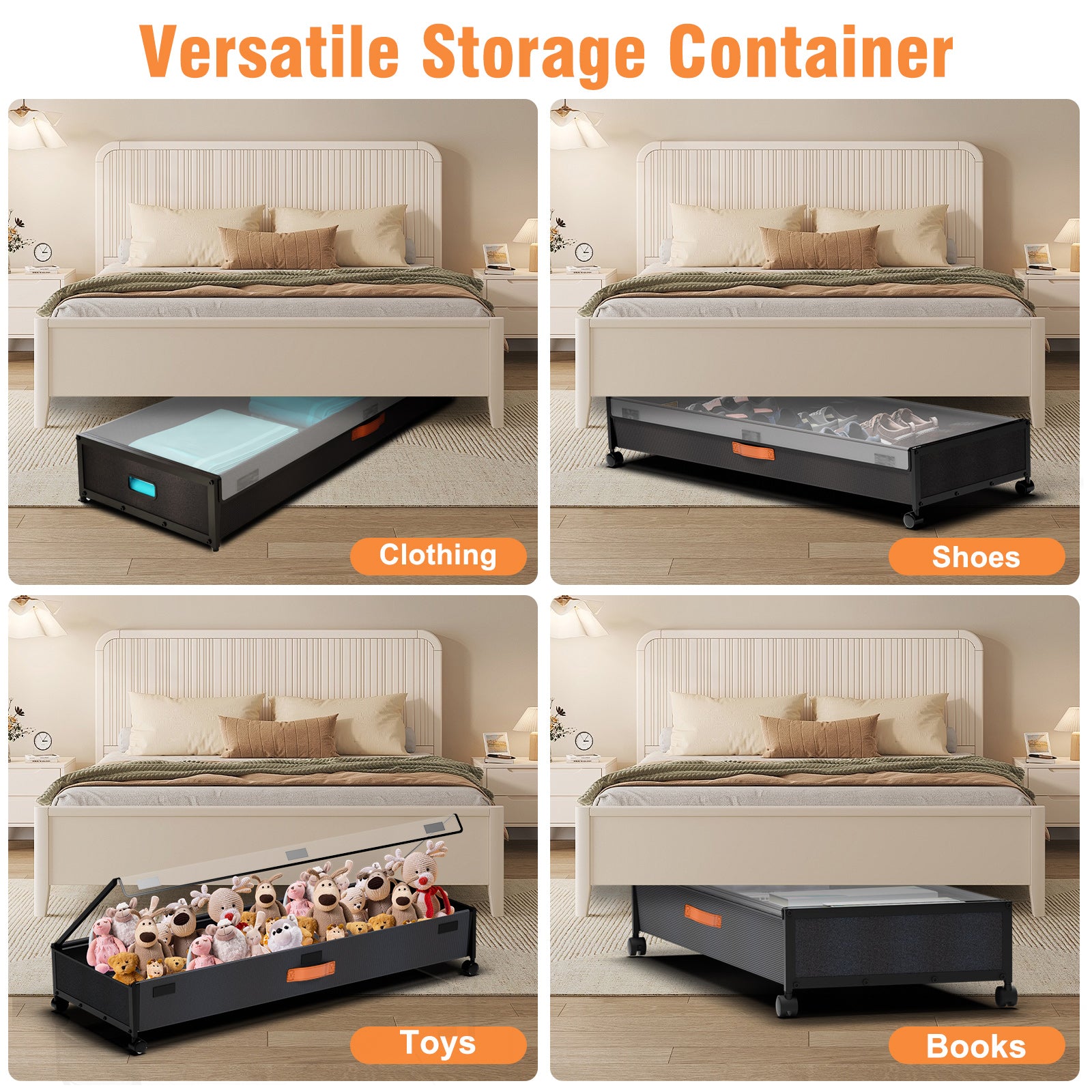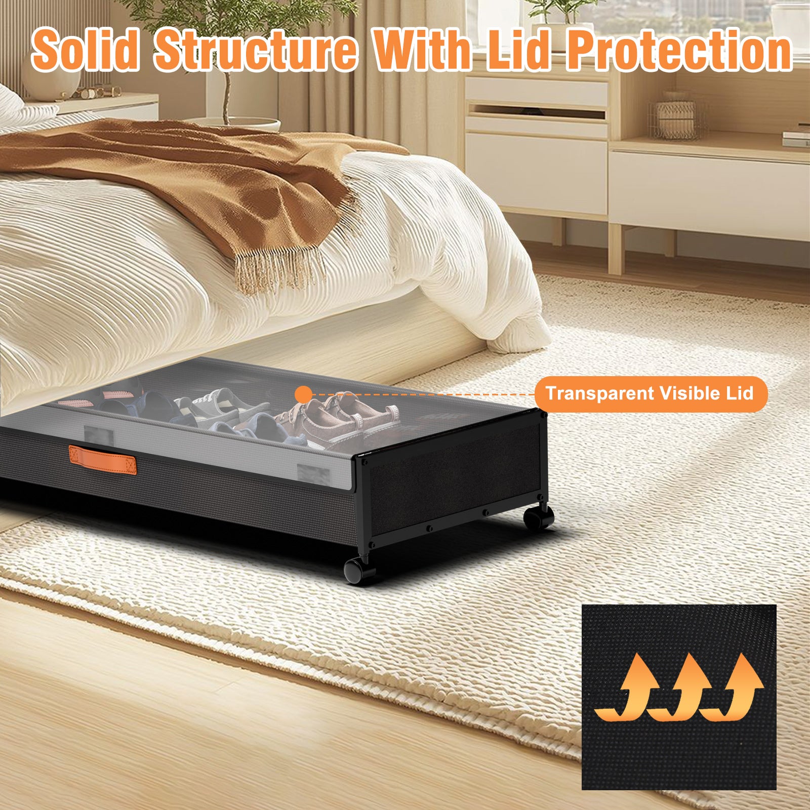 Under Bed Storage with Wheels, XXXL Larger Under Bed Storage Containers with Clear Lids, 36'' Lengthen Under Bed Shoe Organizer, Rolling for Shoes Clothes(Black 2 Pack, XXXL
