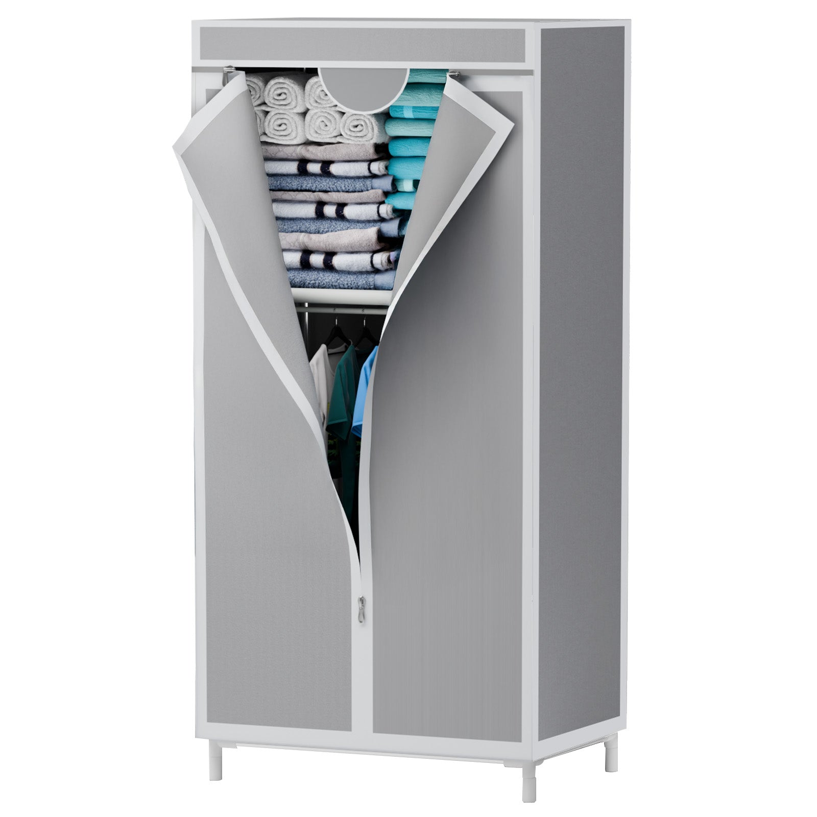Wardrobe Closet for Hanging Clothes, Bedroom Clothes Closet Storage Organizer, Fabric Wardrobe, Portable Closet with Hanging Rods, Gray