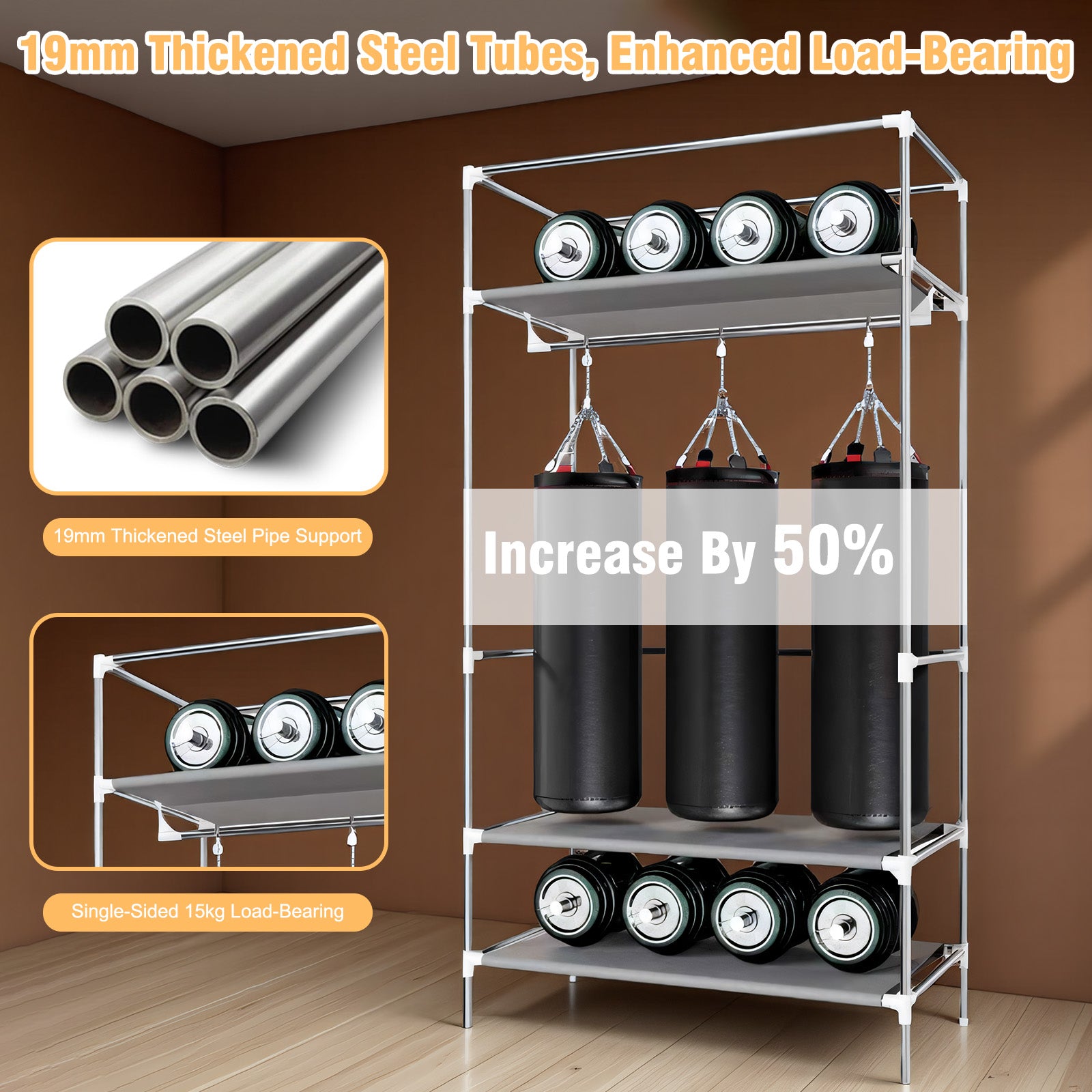 This non-woven fabric closet organizers and storage features a 19mm thickened steel tube frame, increasing load-bearing capacity by 50%. Made of high-density Oxford fabric, the exterior is durable, wear-resistant, dustproof, and light-blocking, with a minimalist look that blends seamlessly into any home decor.